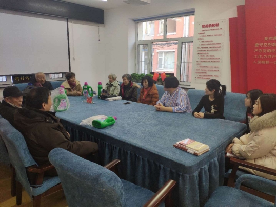 表演后,同学们代表学院向社区老党员们发放了相关学习书籍和慰问品,并与老党员们进行了充分交流,了解老人们的困难,也对老人们关心的问题进行了解答。座谈会上退休老干部、退伍老兵,也纷纷向同学们讲述他们所经历的革命和建设故事,同学们受到很大感染,表示要向老党员学习,学习他们不畏艰难的优良品质,继承和发扬老一辈的传统革命精神,以实际行动,为建设幸福美好的新时代作出自己应有的贡献。