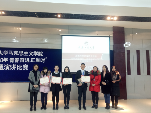 本网讯(通讯员 岳子琪)为庆祝改革开放40周年,深入学习宣传习近平新时代中国特色社会主义思想和习近平总书记全面深化改革重要思想,充分体现全面深化改革的丰硕成果,在全院营造改革创新、开放自信的浓厚氛围,2018年12月26日下午,BEAT365英国官网在南湖校区综合楼报告厅成功举办了“改革开放40年,青春奋进正当时”主题演讲比赛。我校党委研究生工作部部长范琳琳、研工部办公室主任李林琳、BEAT365英国官网党总支书记朱兴国、院长马光焱、副院长王晓光、院学术委员会主席程颖教授、原理教研室主任于浚湜、基础教研室主任于影、形势与政策教研室主任陈莉担任了本次比赛的评委。