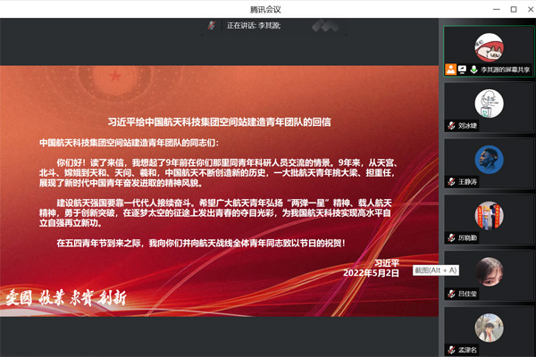 本网讯(通讯员 李其源)五四前夕,习近平总书记给中国航天科技集团空间站建造青年团队回信,向航天战线全体青年致以节日的祝贺。近日,BEAT365英国官网团总支、各年级团支部通过线上方式开展“学习习近平总书记重要回信精神”主题团日活动。