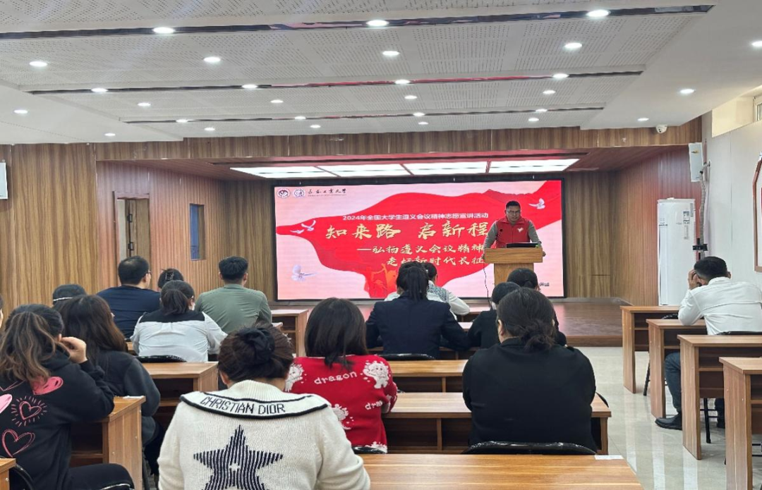 2024年11月7日,我院“红途溯源”志愿宣讲团成功入选由团中央青年志愿者行动指导中心、中共遵义市委、共青团贵州省委联合开展的2024年全国大学生遵义会议精神志愿宣讲活动。宣讲团志愿者经过前期认真准备和学习,通过图片、视频等资料,就党中央在长征路上的光辉历程、遵义时期的拨乱反正、遵义精神的深刻内涵以及如何汲取时代力量弘扬遵义精神进行了整理和阐述。