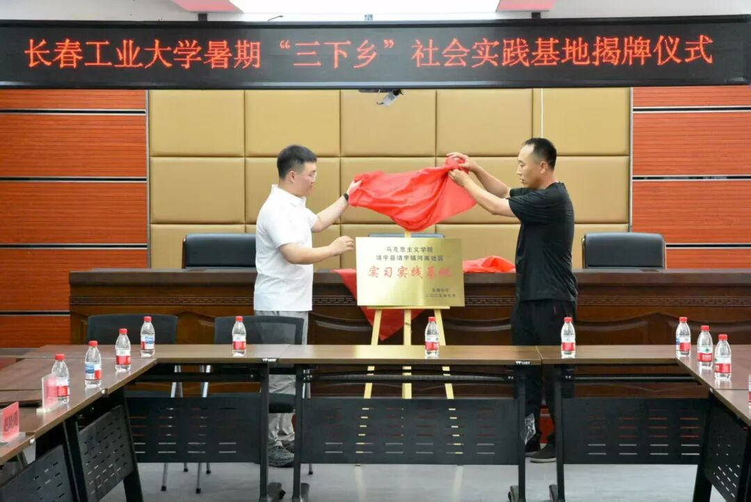 仪式由共青团靖宇县委书记范晶主持,中共靖宇县委社会工作部部长李鹏程致欢迎辞,公共管理学院团委书记李守瑶和学生志愿者代表分别发言。最后,校地双方代表共同为实践基地揭牌。