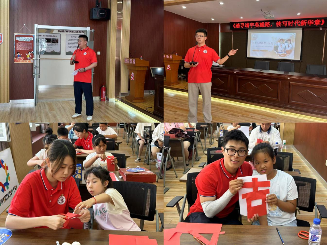 马克思主义理论专业研究生为社区小学生讲授《踏寻靖宇英魂路,续写时代新华章》专题思政课,助力大中小思政课一体化建设,强化红色基因传承。此外,实践团员们还与社区小朋友一同体验非遗传承课,感受剪纸文化的独特魅力。