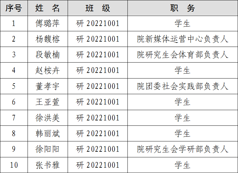 为了认真贯彻党的发展党员工作方针,充分发扬民主,增加发展党员工作的透明度,把好发展党员质量关,确保新党员质量,经学院党委研究,现将已列入2024年度发展计划,且通过党支部民主测评的发展对象在全院范围内公示。公示时间为5个工作日(2024年7月4日至2024年7月10日)。在公示期内,党内外群众如对发展对象有意见,请以真实单位、姓名,用书面、电话等形式如实反映情况。群众反映的问题可受到法律保护,我们将严格保密。
