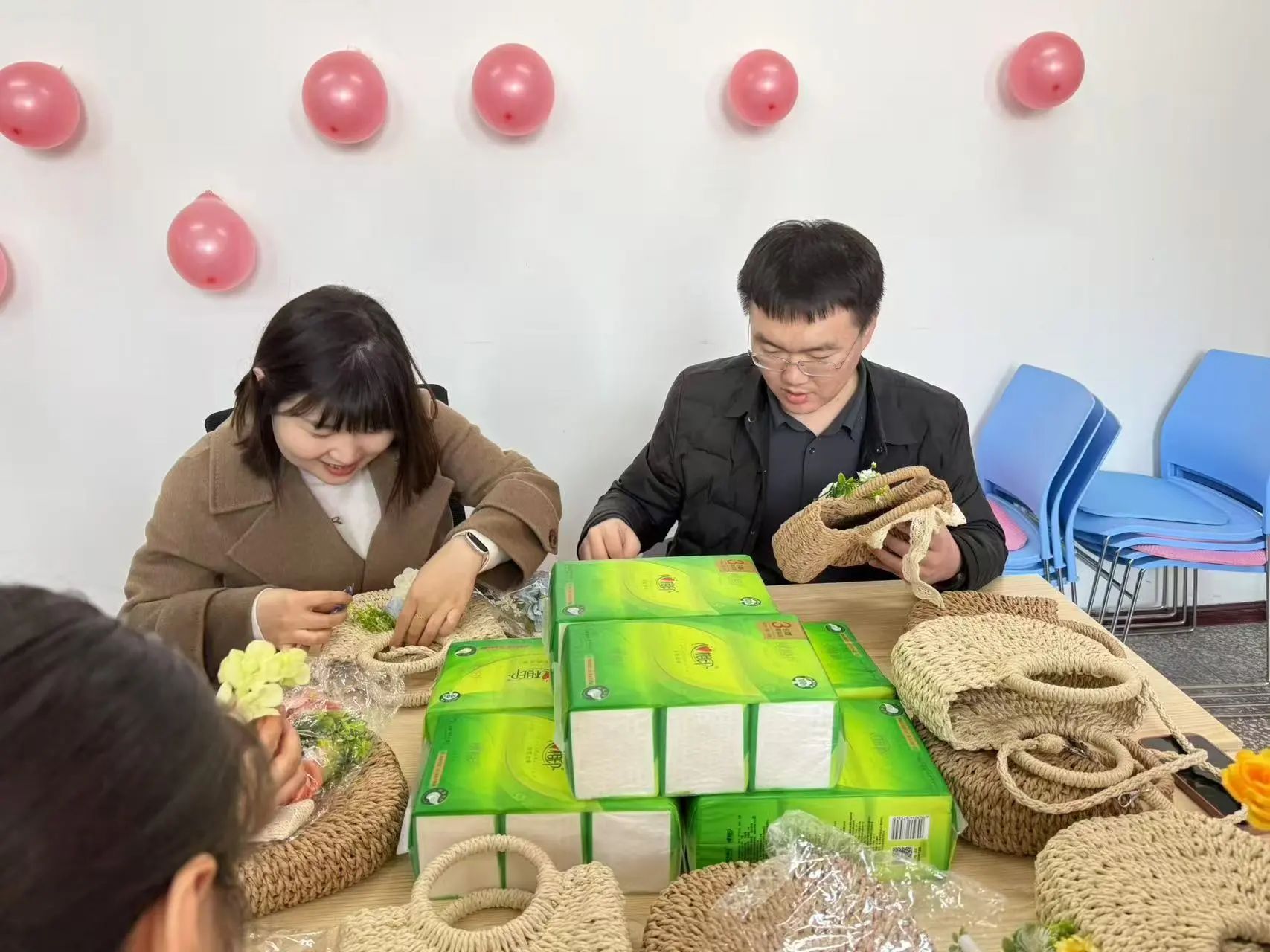在第115个“三八”国际劳动妇女节来临之际,为丰富学院教职工精神文化生活,增强团队凝聚力,3月5日下午BEAT365英国官网在学院会议室开展“包揽春日,魅力巾帼”手工草编包DIY活动,全院教职工齐聚一堂,共度温馨且意义非凡的节日。