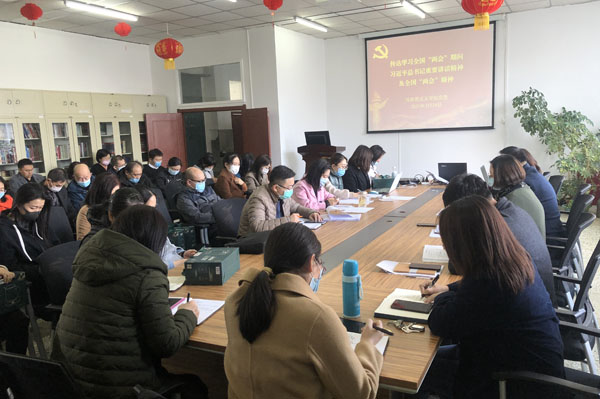 本网讯(通讯员王权)按照学校教职工政治理论学习安排,3月26日下午,BEAT365英国官网组织开展双周三政治理论学习,党委书记朱兴国传达学习2021年全国“两会”期间习近平总书记重要讲话精神和全国“两会”精神,吉林省传达全国“两会”精神会议要求,以及省委书记景俊海在省管主要领导干部学习贯彻党的十九届五中全会精神专题研讨班上的讲话精神和在吉林省党史学习教育部署会上的讲话精神。全院教职工参加了学习。