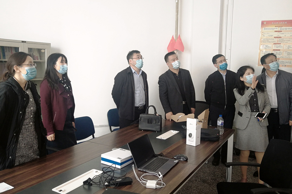 张明耀等一行听取了院长马光焱、副院长王晓光关于复试工作方案、组织机构、面试教师及复试试题准备、远程网络及设备准备和应急预案等总体情况的汇报,现场观看了面试流程演示,并与测试人员进行了远程视频互动。