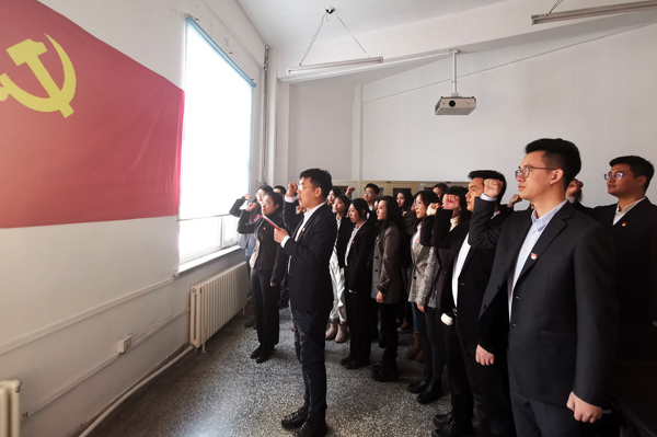 在学院党总支副书记、研究生党支部书记王权的领誓下,全体党员面向党旗、紧握右拳庄严宣誓。