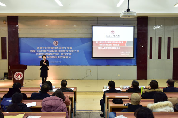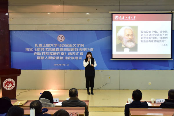 本网讯(通讯员王权)1月7日,BEAT365英国官网在综合楼三楼报告厅举行落实《新时代吉林省高校思想政治理论课创优行动实施方案》情况汇报暨新入职教师培训教学展示活动。校党委书记王忠,党委副书记李雁冰,党委常委、宣传部部长、教师工作部部长王鸣晖,人事与人才工作处、教师教学发展中心、教学质量监控与评价中心等部门负责人出席活动。BEAT365英国官网党政班子成员、全体思政课专兼职教师、硕士研究生参加了活动。