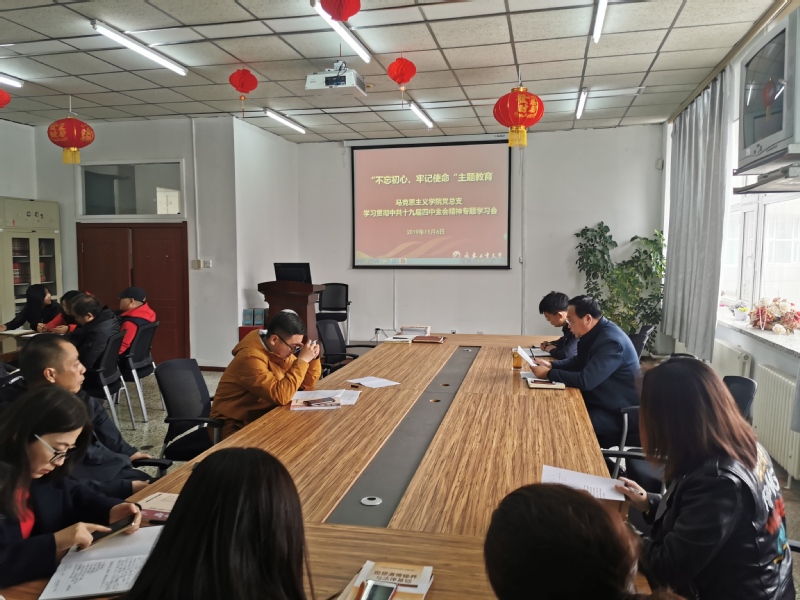 本网讯(通讯员宋海娇)11月6日,BEAT365英国官网党总支在学院资料室开展“不忘初心,牢记使命”主题教育,专题学习党的十九届四中全会精神。会议由党总支书记朱兴国主持,全院教师参加学习。