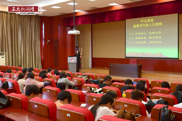 于浚湜以《牢记使命,做新时代的人民教师》为题,从千年伟人、真理之光,逻辑相关、理论跃迁,牢记使命、勇担重任等三个方面,就为什么要高度重视马克思主义理论,如何理解习近平新时代中国特色社会主义思想对马克思主义理论的传承发展,以及如何做一名“四有”好老师,做学生成长的指导者和引路人进行了详细阐述。于浚湜表示,我们高校教师要严格按照习近平总书记要求,坚持立德树人根本任务,不断提升工作水平,争做“有理想信念、有道德情操、有扎实知识、有仁爱之心”的好老师。