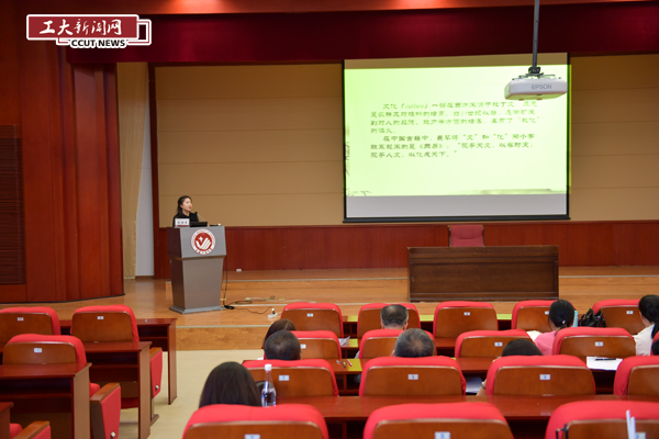 赵秀月以习近平总书记在北京大学师生座谈会的讲话为切入点,从何为文化自信、何以文化自信、何能文化自信等三个方面,作题为《树立文化自信,放飞青春梦想》的专题报告。赵秀月指出,文化是一个国家一个民族最重要的力量源泉,关乎民族兴衰、关乎国力竞争。我们要不断提高文化软实力,即提高文化的创新能力、提高文化的传播能力、推动中华文化走向世界,坚定马克思主义信仰,培育和践行社会主义核心价值观,加强思想道德教育,建设社会主义文化强国。