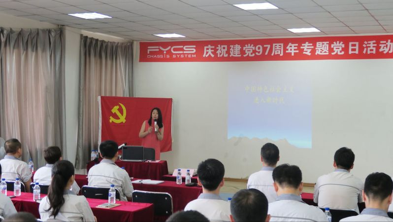 (通讯员刘玲玲)2018年6月28日下午14时,我院于浚湜老师应一汽集团邀请,参加“庆祝建党97周年专题党日活动”,为全体党员上了一堂名为“中国特色社会主义进入新时代”的党课。