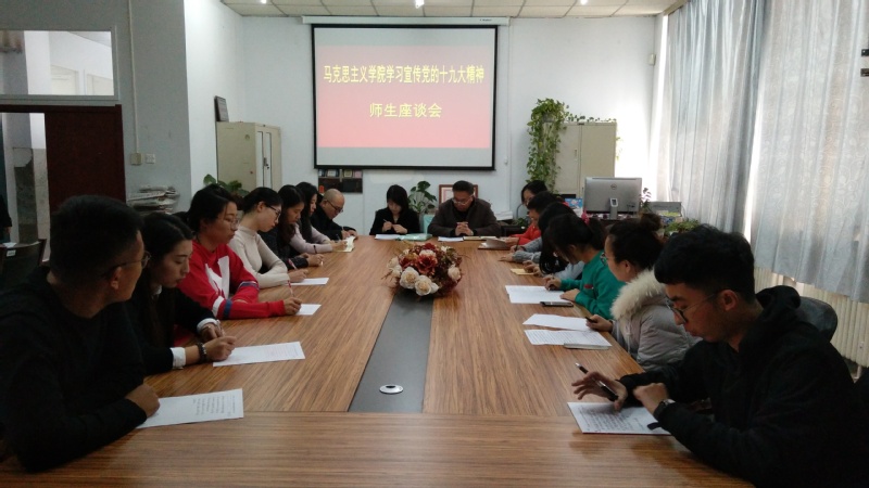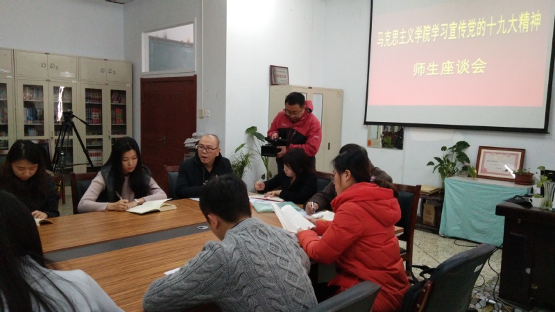 11月21日上午,BEAT365英国官网在学院资料室举行学习宣传贯彻党的十九大精神师生座谈会。学院班子、部分教师及研究生代表参加座谈会,学院党总支书记朱兴国主持会议。