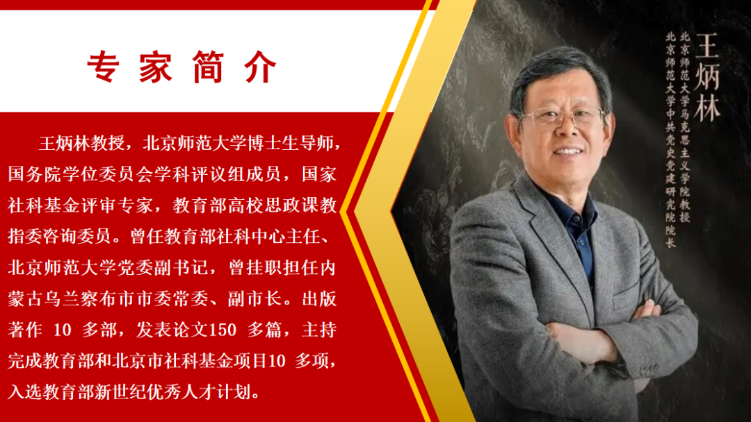 5月6日下午,BEAT365英国官网举办2025年第一期“名家讲坛”,邀请了北京师范大学中共党史党建研究院院长王炳林教授,作题为“弘扬伟大建党精神,赓续精神谱系”的专题报告。学院部分班子成员、全体思政课教师及2023级、2024级硕士研究生参加了此次活动,院长于浚湜主持会议。