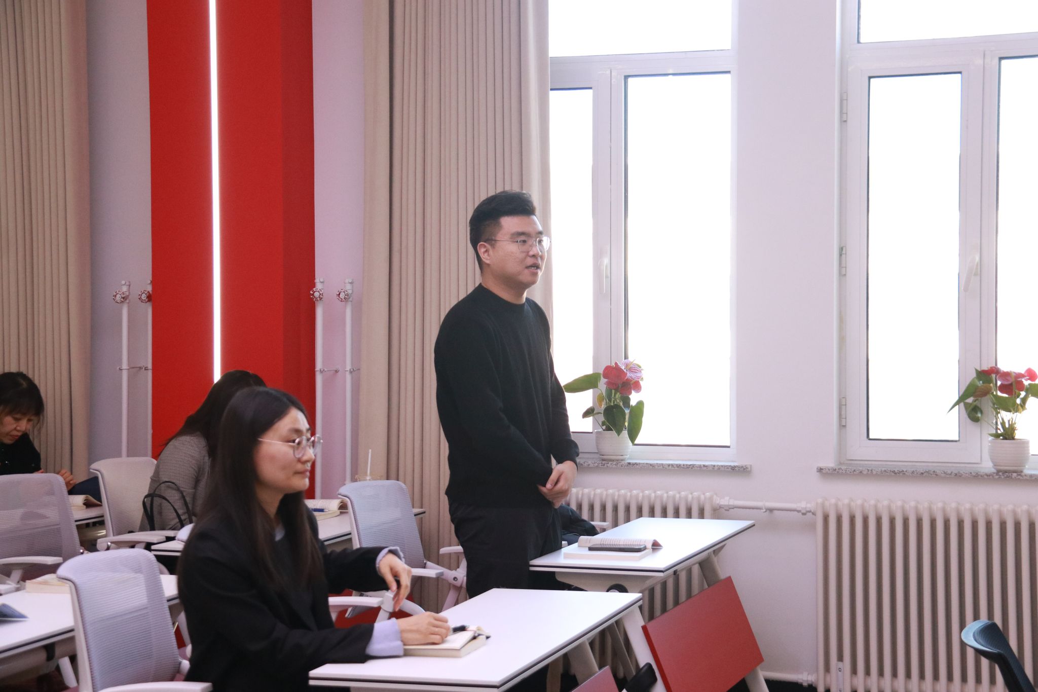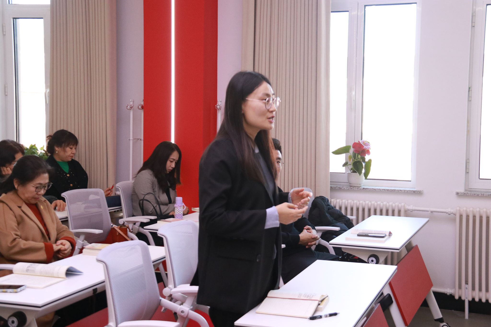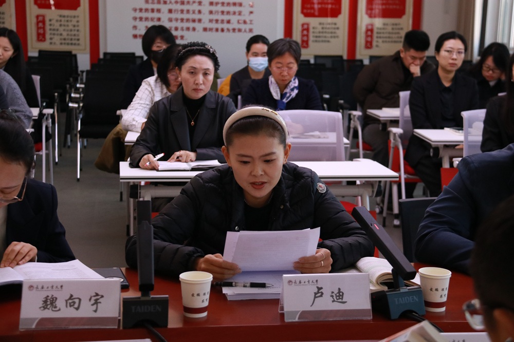会上,习近平新时代中国特色社会主义思想概论党支部书记楚洪涛分享了党的二十届四中全会精神学习心得,思政课教师尚昭晨、侯琳琳、王薪童、魏向宇、卢迪,结合课程进程、内容特点汇报了下阶段教学设计思路,参会教师交流讨论了近期教学中遇到的问题及学生关心关注的领域,现场畅所欲言、氛围热烈。