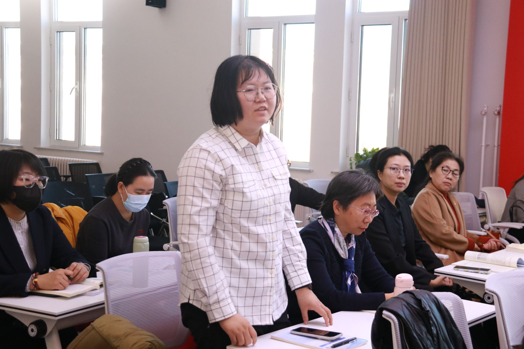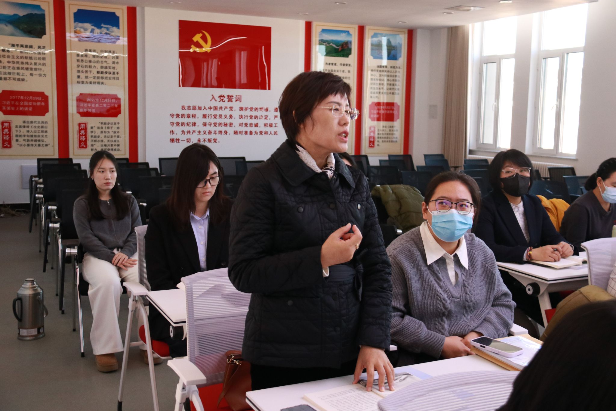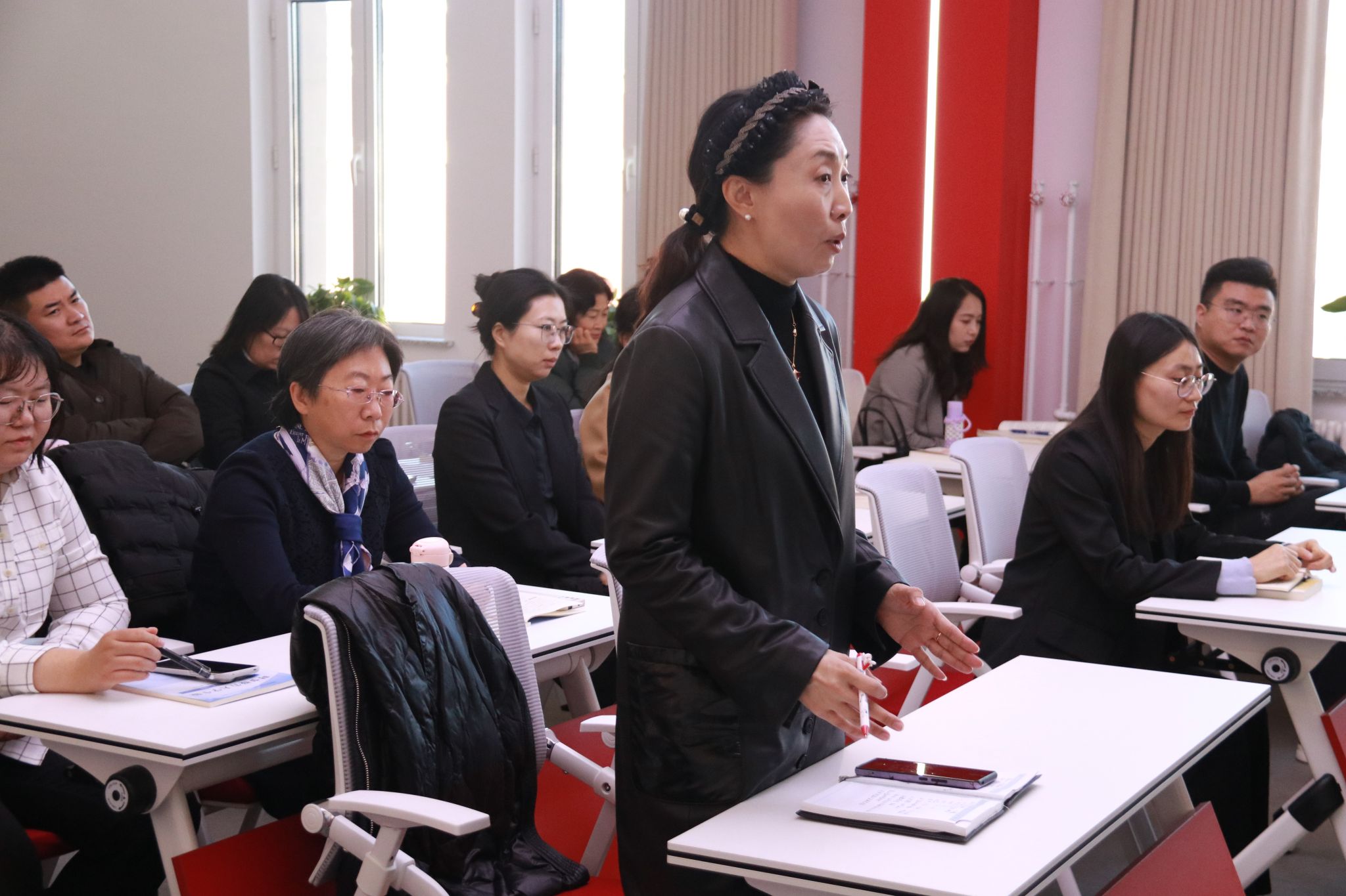 会上,习近平新时代中国特色社会主义思想概论党支部书记楚洪涛分享了党的二十届四中全会精神学习心得,思政课教师尚昭晨、侯琳琳、王薪童、魏向宇、卢迪,结合课程进程、内容特点汇报了下阶段教学设计思路,参会教师交流讨论了近期教学中遇到的问题及学生关心关注的领域,现场畅所欲言、氛围热烈。