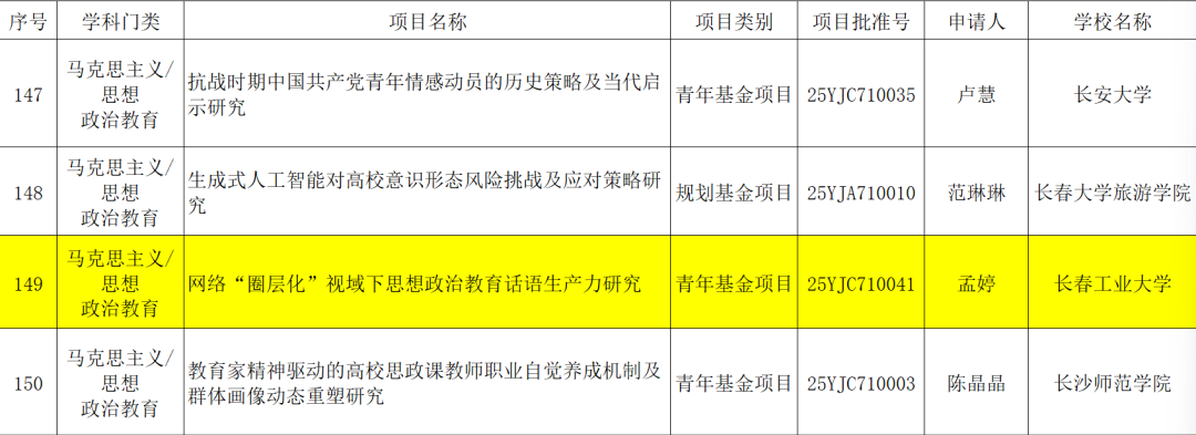 近日,教育部社科司正式公布了2025度教育部人文社会科学研究项目立项名单。