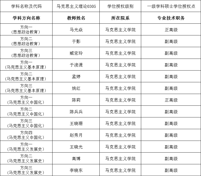 学术学位授权点骨干教师